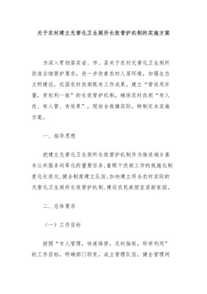 / 【七哥公文】2024年:关于农村建立无害化卫生厕所长效管护机制的实施方案+更多免费公文+VX:QiGeGongWen2024