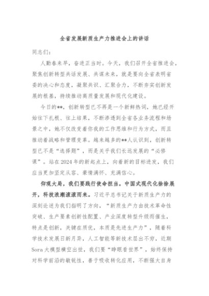 / 【七哥公文】2024年:全省发展新质生产力推进会上的讲话+更多免费公文+VX:QiGeGongWen2024