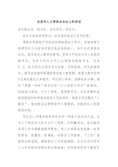 【七哥公文】2024年:在某市人大常委会会议上的讲话+更多免费公文+VX:QiGeGongWen2024
