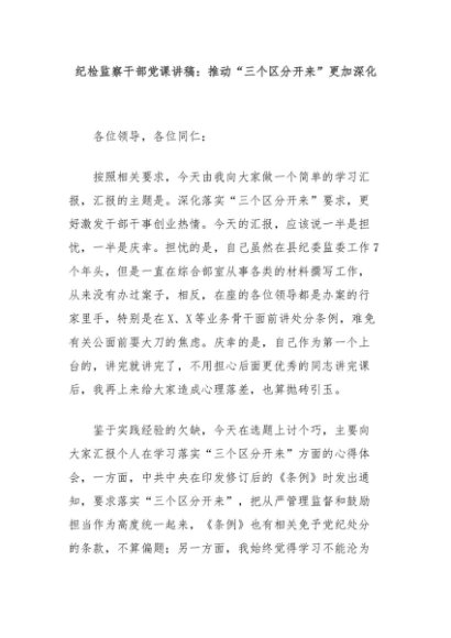 【七哥公文】2024年:纪检监察干部党课讲稿:推动“三个区分开来”更加深化+更多免费公文+VX:QiGeGongWen2024