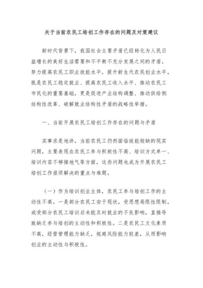 【七哥公文】2024年:关于当前农民工培创工作存在的问题及对策建议+更多免费公文+VX:QiGeGongWen2024