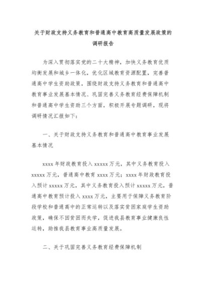 【七哥公文】2024年:关于财政支持义务教育和普通高中教育高质量发展政策的调研报告+更多免费公文+VX:QiGeGongWen2024