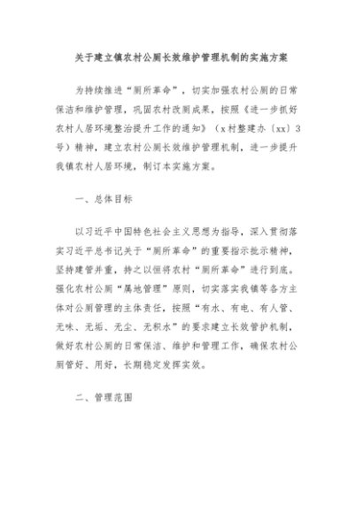 / 【七哥公文】2024年:关于建立镇农村公厕长效维护管理机制的实施方案+更多免费公文+VX:QiGeGongWen2024