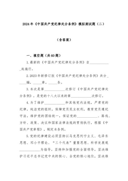 【七哥公文】2024年:2024年《中国共产党纪律处分条例》模拟测试题(二)(含答案)+更多免费公文+VX:QiGeGongWen2024