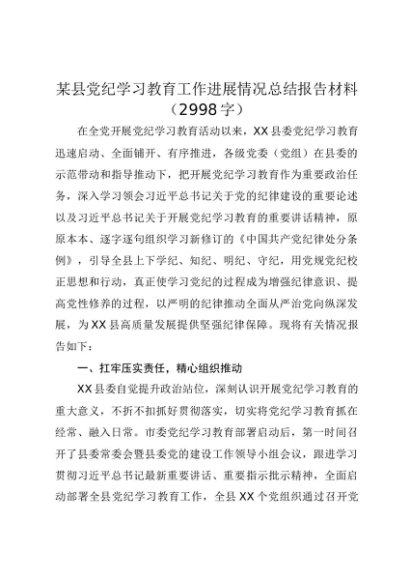 【七哥公文】2024年:某县党纪学习教育工作进展情况总结报告材料2998字+更多免费公文+VX:QiGeGongWen2024