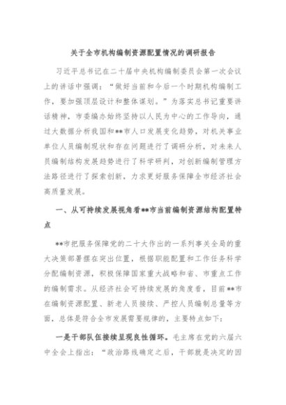 / 【七哥公文】2024年:关于全市机构编制资源配置情况的调研报告+更多免费公文+VX:QiGeGongWen2024