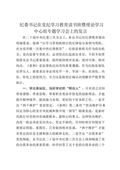 【七哥公文】2024年:纪委书记在党纪学习教育读书班暨理论学习中心组专题学习会上的发言1900字+更多免费公文+VX:QiGeGongWen2024
