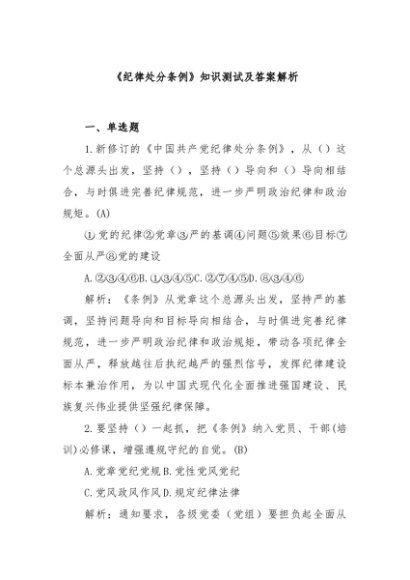 / 【七哥公文】2024年:《纪律处分条例》知识测试及答案解析+更多免费公文+VX:QiGeGongWen2024