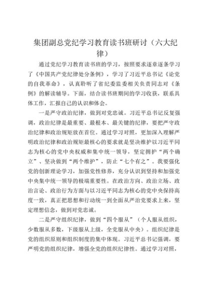 / 【七哥公文】2024年:国企党纪学习教育读书班六大纪律专题研讨发言+更多免费公文+VX:QiGeGongWen2024