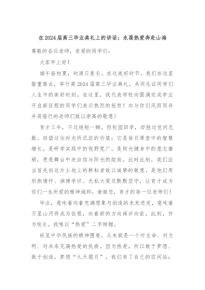 【七哥公文】2024年:在2024届高三毕业典礼上的讲话:永葆热爱奔赴山海+更多免费公文+VX:QiGeGongWen2024