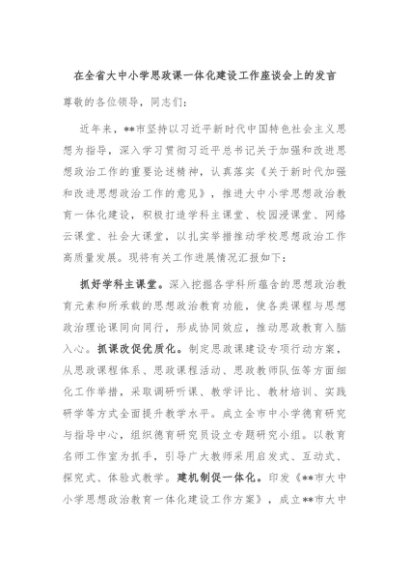 / 【七哥公文】2024年:在全省大中小学思政课一体化建设工作座谈会上的发言+更多免费公文+VX:QiGeGongWen2024