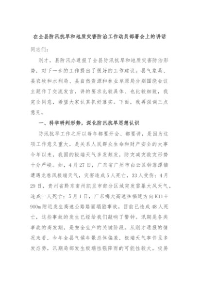 【七哥公文】2024年:在全县防汛抗旱和地质灾害防治工作动员部署会上的讲话+更多免费公文+VX:QiGeGongWen2024