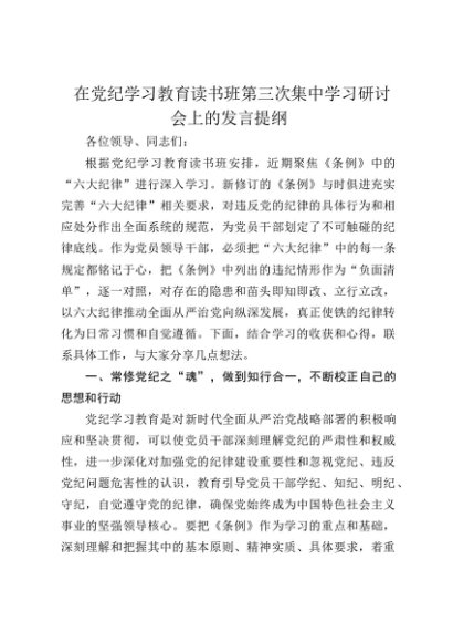 【七哥公文】2024年:在党纪学习教育读书班六大纪律专题研讨会上的发言3400字+更多免费公文+VX:QiGeGongWen2024