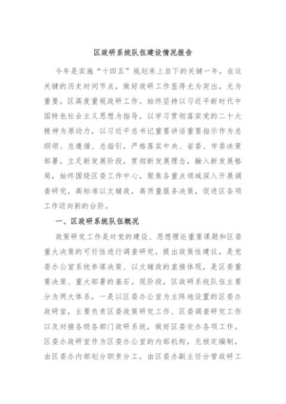 / 【七哥公文】2024年:区政研系统队伍建设情况报告+更多免费公文+VX:QiGeGongWen2024