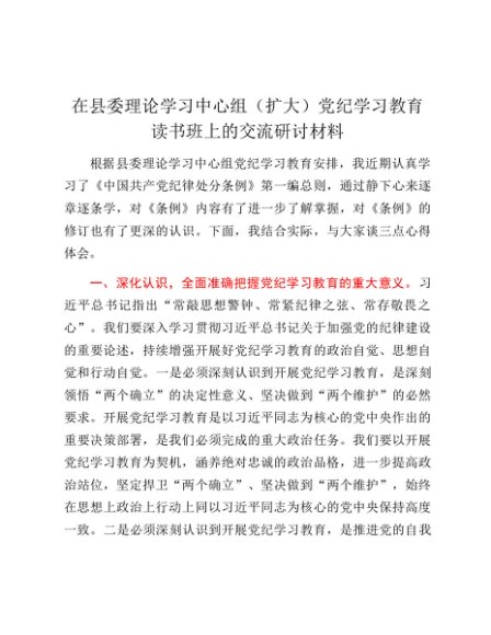 【七哥公文】2024年:在县委理论学习中心组扩大党纪学习教育读书班上的交流研讨材料3+更多免费公文+VX:QiGeGongWen2024