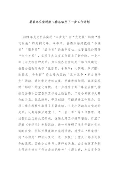 / 【七哥公文】2024年:县委办公室近期工作总结及下一步工作计划+更多免费公文+VX:QiGeGongWen2024