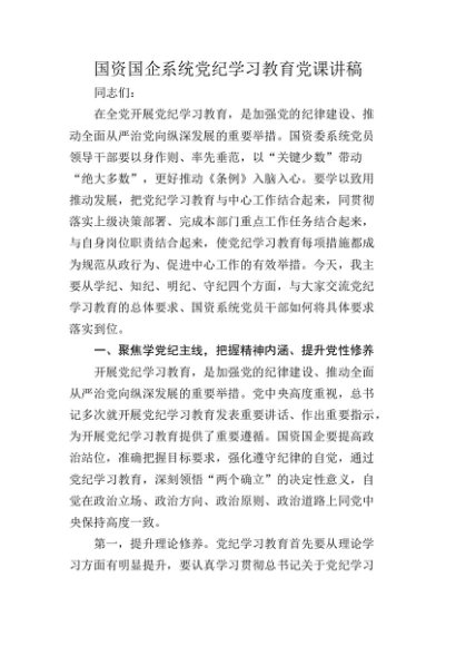 / 【七哥公文】2024年:国资国企系统党纪学习教育党课讲稿5300字+更多免费公文+VX:QiGeGongWen2024