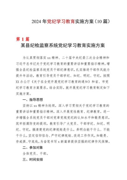 / 【七哥公文】2024年:基层机关2024年党纪学习教育方案实施方案+更多免费公文+VX:QiGeGongWen2024
