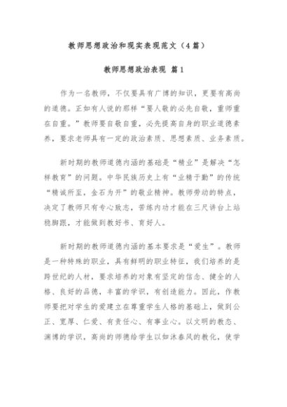 / 【七哥公文】2024年:(4篇)教师思想政治和现实表现范文+更多免费公文+VX:QiGeGongWen2024