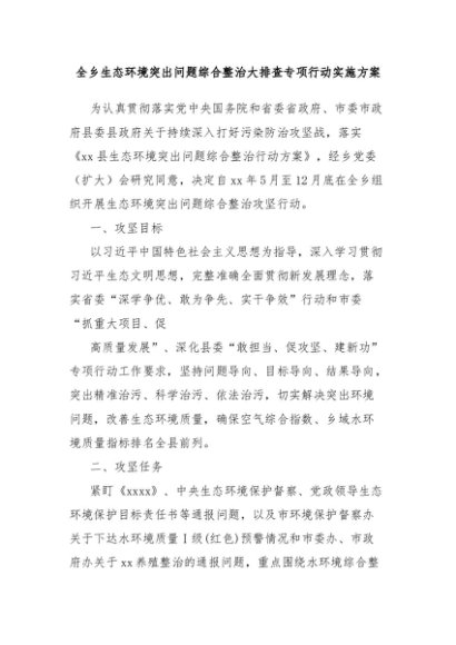 【七哥公文】2024年:全乡生态环境突出问题综合整治大排查专项行动实施方案+更多免费公文+VX:QiGeGongWen2024