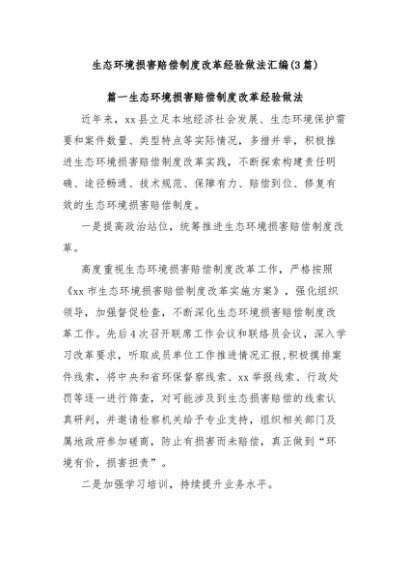 / 【七哥公文】2024年:(3篇)生态环境损害赔偿制度改革经验做法汇编+更多免费公文+VX:QiGeGongWen2024