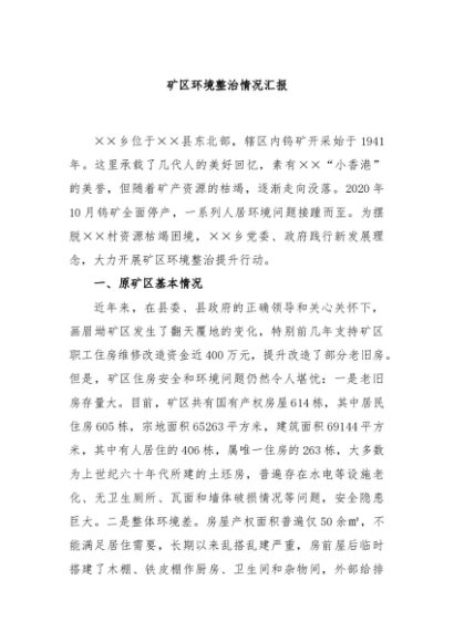 / 【七哥公文】2024年:矿区环境整治情况汇报+更多免费公文+VX:QiGeGongWen2024