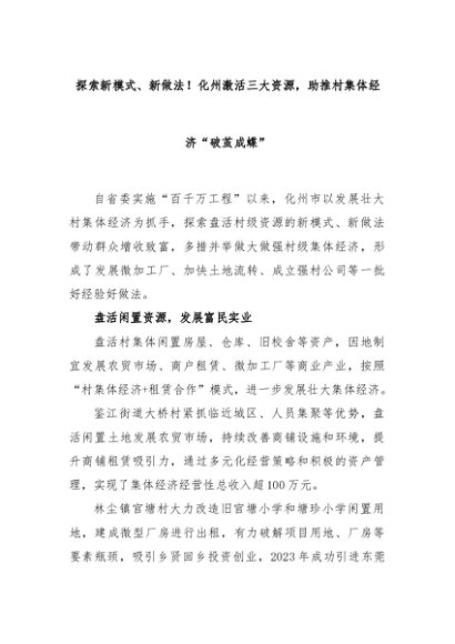 【七哥公文】2024年:探索新模式、新做法!化州激活三大资源,助推村集体经济“破茧成蝶”+更多免费公文+VX:QiGeGongWen2024