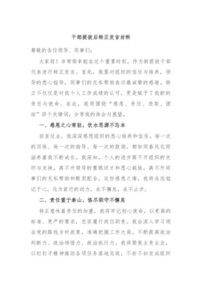 / 【七哥公文】2024年:干部提拔后转正发言材料+更多免费公文+VX:QiGeGongWen2024