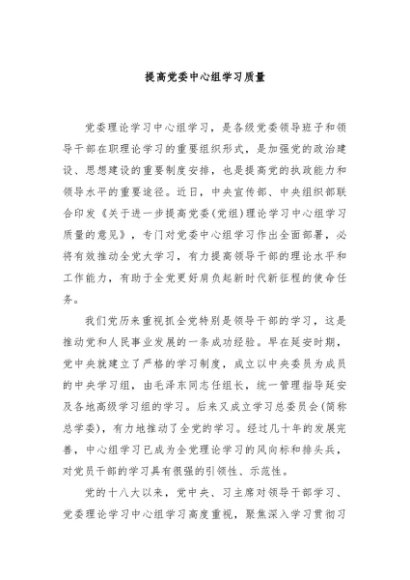 【七哥公文】2024年:提高党委中心组学习质量+更多免费公文+VX:QiGeGongWen2024