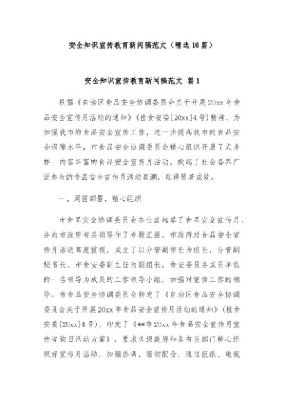 / 【七哥公文】2024年:(16篇)安全知识宣传教育新闻稿范文+更多免费公文+VX:QiGeGongWen2024