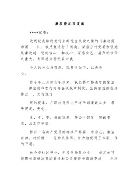 / 【七哥公文】2024年:廉政提示回复函+更多免费公文+VX:QiGeGongWen2024