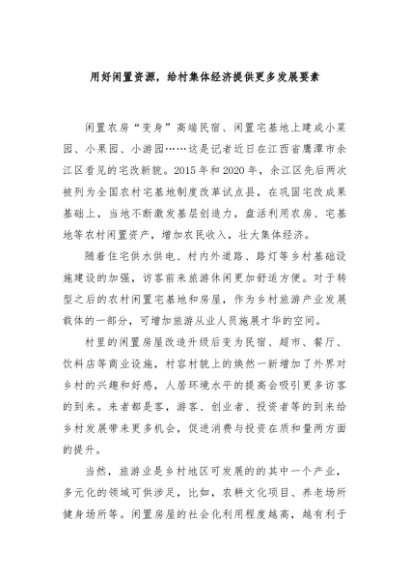 【七哥公文】2024年:用好闲置资源,给村集体经济提供更多发展要素+更多免费公文+VX:QiGeGongWen2024