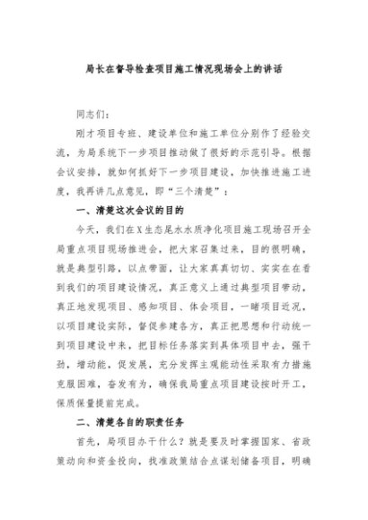 / 【七哥公文】2024年:局长在督导检查项目施工情况现场会上的讲话+更多免费公文+VX:QiGeGongWen2024