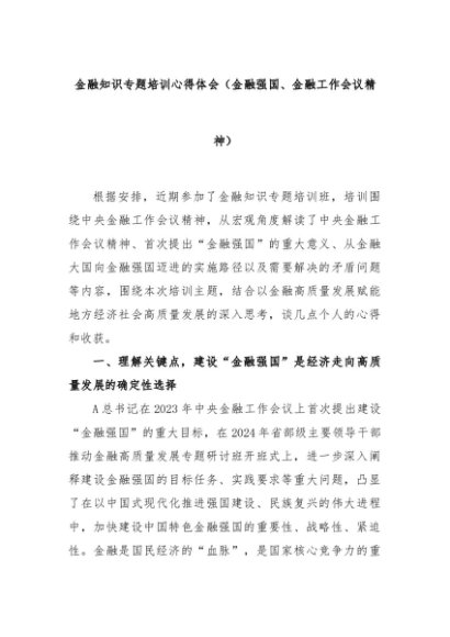 【七哥公文】2024年:金融知识专题培训心得体会(金融强国、金融工作会议精神)+更多免费公文+VX:QiGeGongWen2024