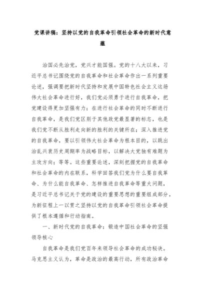 【七哥公文】2024年:党课讲稿:坚持以党的自我革命引领社会革命的新时代意蕴+更多免费公文+VX:QiGeGongWen2024