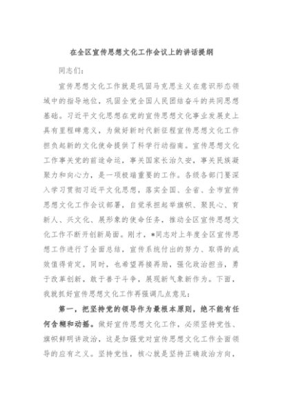 / 【七哥公文】2024年:在全区宣传思想文化工作会议上的讲话提纲+更多免费公文+VX:QiGeGongWen2024
