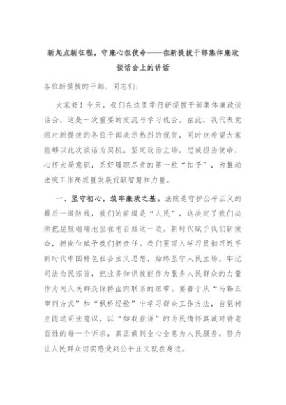 【七哥公文】2024年:新起点新征程,守廉心担使命——在新提拔干部集体廉政谈话会上的讲话+更多免费公文+VX:QiGeGongWen2024