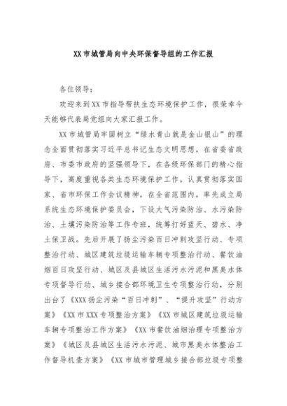 / 【七哥公文】2024年:XX市城管局向中央环保督导组的工作汇报+更多免费公文+VX:QiGeGongWen2024