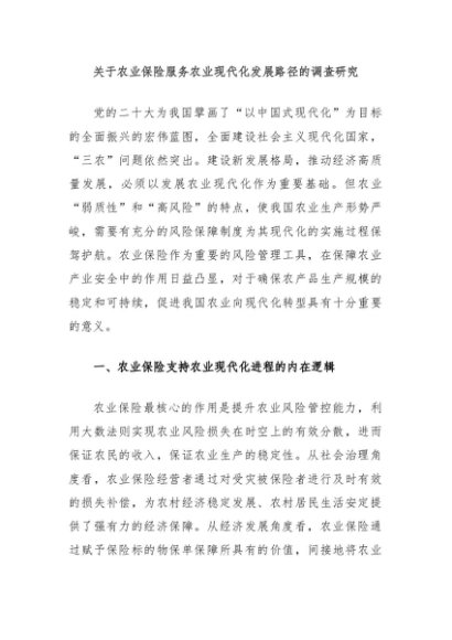 【七哥公文】2024年:关于农业保险服务农业现代化发展路径的调查研究+更多免费公文+VX:QiGeGongWen2024
