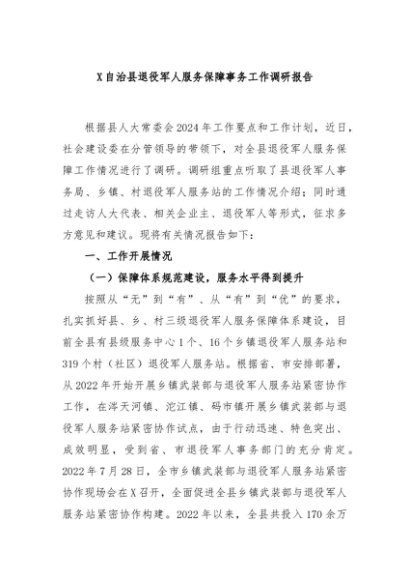 / 【七哥公文】2024年:X自治县退役军人服务保障事务工作调研报告+更多免费公文+VX:QiGeGongWen2024