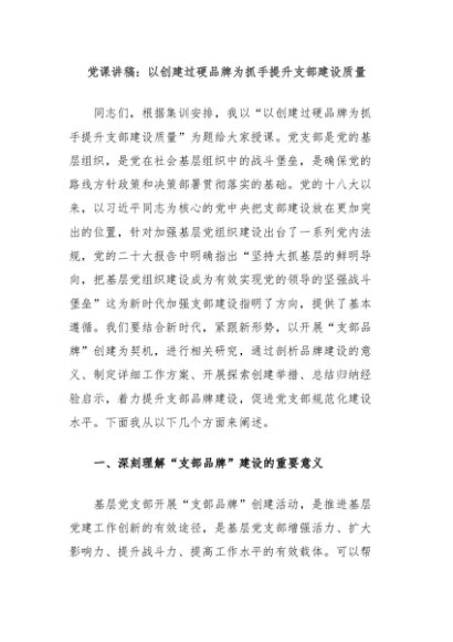 / 【七哥公文】2024年:党课讲稿:以创建过硬品牌为抓手提升支部建设质量+更多免费公文+VX:QiGeGongWen2024