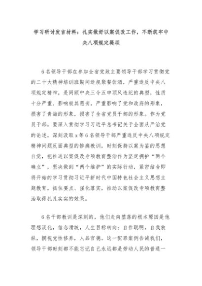 【七哥公文】2024年:学习研讨发言材料:扎实做好以案促改工作,不断筑牢中央八项规定堤坝+更多免费公文+VX:QiGeGongWen2024
