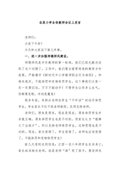 / 【七哥公文】2024年:在某小学全体教师会议上发言+更多免费公文+VX:QiGeGongWen2024