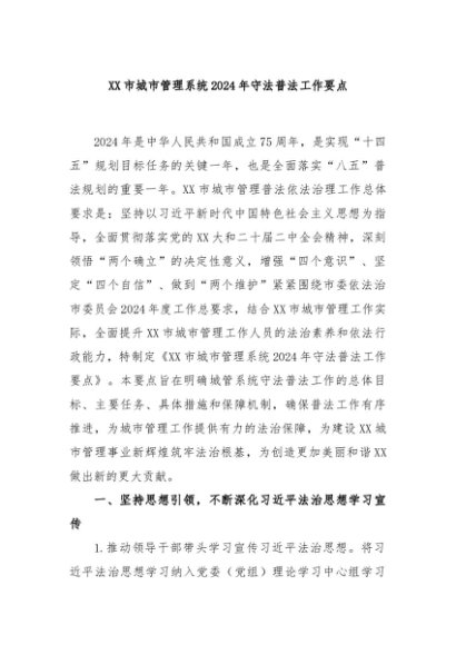 / 【七哥公文】2024年:XX市城市管理系统2024年守法普法工作要点+更多免费公文+VX:QiGeGongWen2024