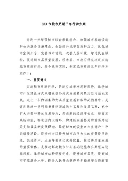 / 【七哥公文】2024年:XXX市城市更新三年行动方案+更多免费公文+VX:QiGeGongWen2024