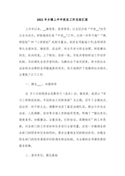 / 【七哥公文】2024年:2021年乡镇上半年政法工作总结汇报+更多免费公文+VX:QiGeGongWen2024