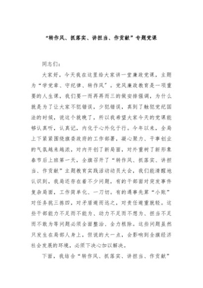 / 【七哥公文】2024年:“转作风、抓落实、讲担当、作贡献”专题党课+更多免费公文+VX:QiGeGongWen2024