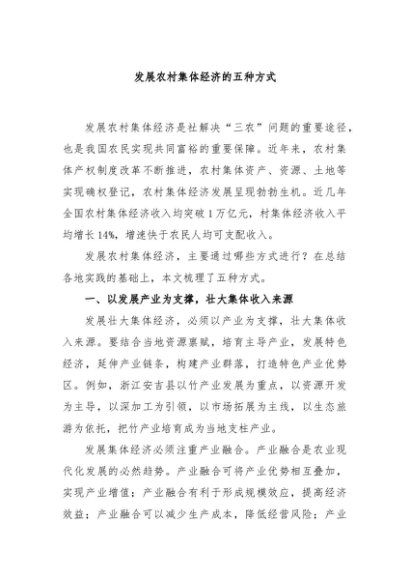 【七哥公文】2024年:发展农村集体经济的五种方式+更多免费公文+VX:QiGeGongWen2024