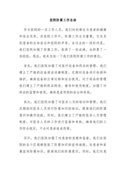 / 【七哥公文】2024年:医院防腐工作总结+更多免费公文+VX:QiGeGongWen2024