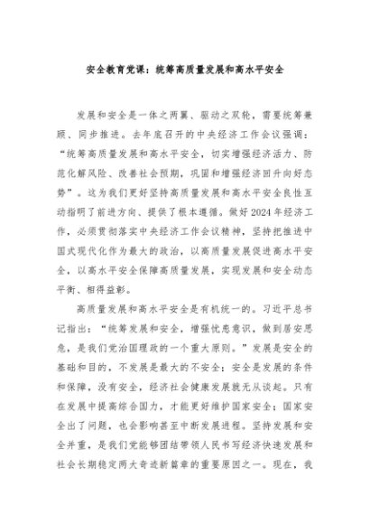 / 【七哥公文】2024年:安全教育党课:统筹高质量发展和高水平安全+更多免费公文+VX:QiGeGongWen2024
